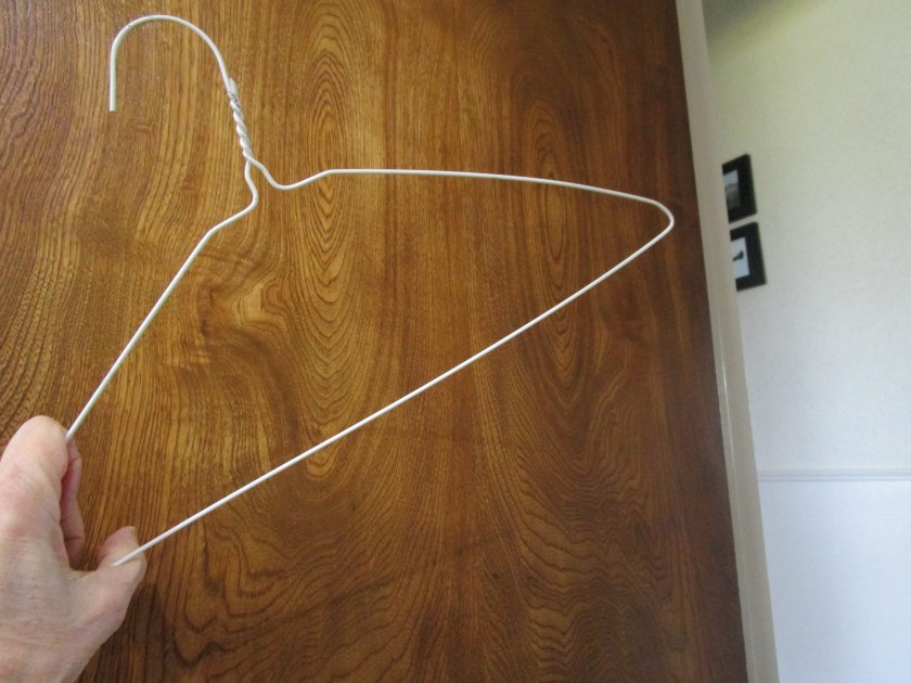 Around here, we seem to have a coat hanger problem. They are everywhere. And, while I don’t condone her approach, Joan Crawford was right about the bad things that wire coat hangers can do to your favorite garments. Today’s post is about turning those nasty wire hangers into lovely padded hangers. As an added benefit, all the materials I am using are recycled.