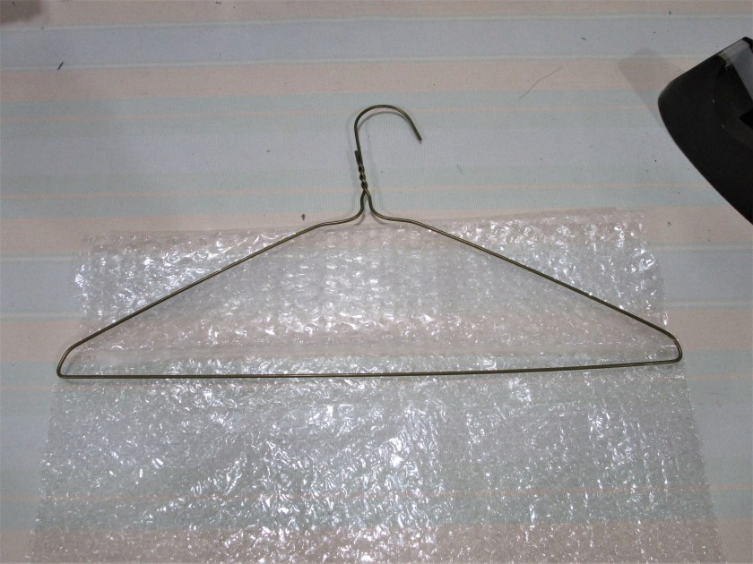 Start with your bubble wrap. Fold it over a few times and lay the hanger on it.
