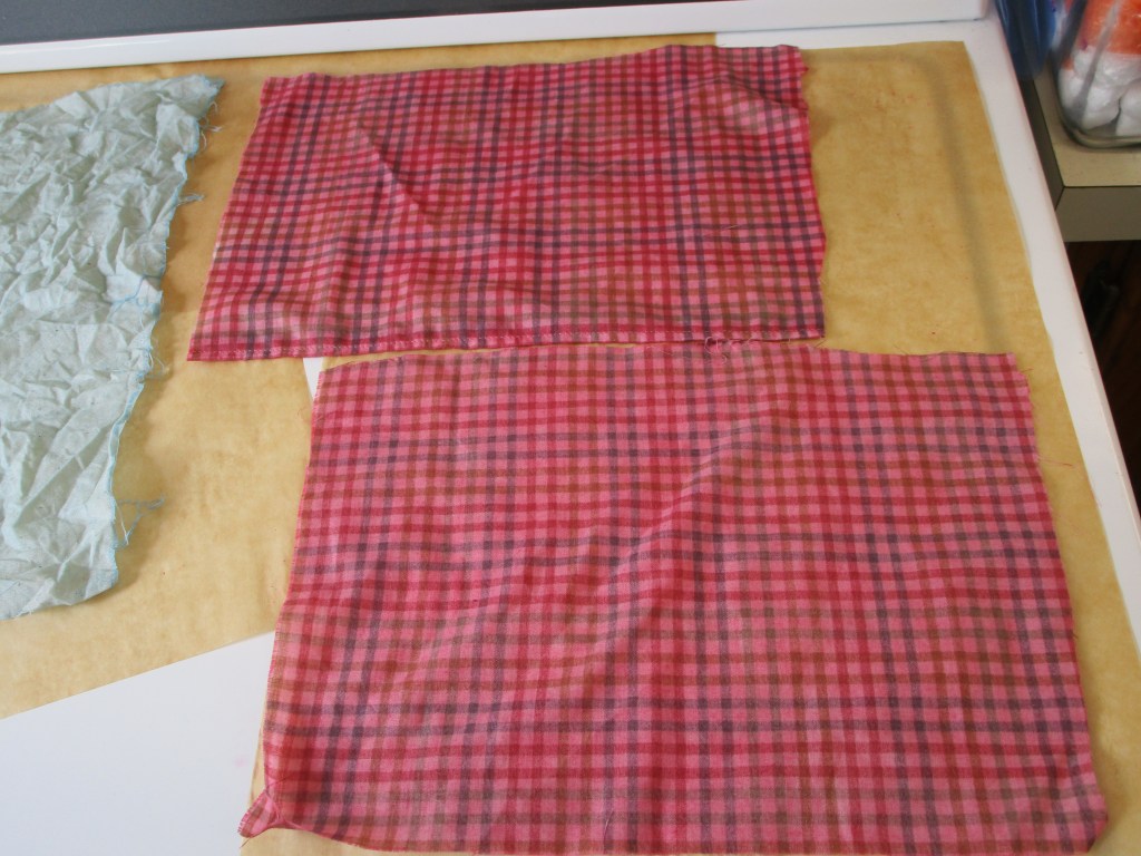 I used the left-over red paint to tint a few printed pieces of fabric: