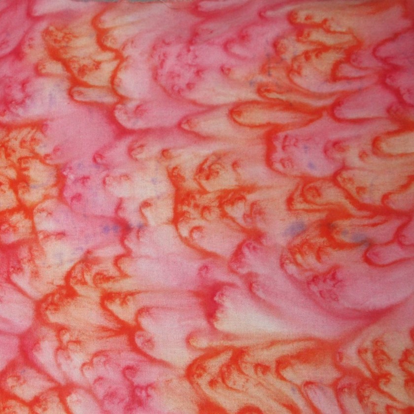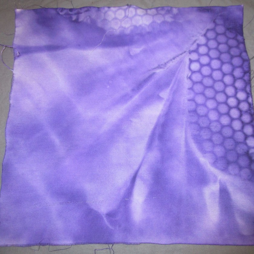 After I finished my two swatches yesterday, I could tell that the two patterns would not go well together in the same quilt square. The patterns were both the same scale. So I decided to make two additional color wash pieces – one in dark purple, to pair with the light patterned swatch, and one in pale pink, to pair with the dark patterned swatch. They turned out great – the colors were just what I wanted.