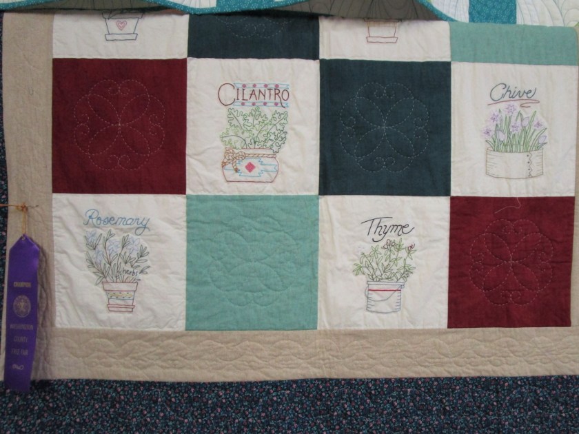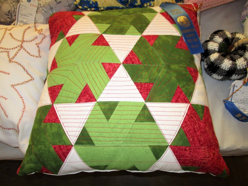 Sadly, there were not near as many needle arts entries as there were in past years. Achieving a couple of blue ribbons for my two was not that gratifying.