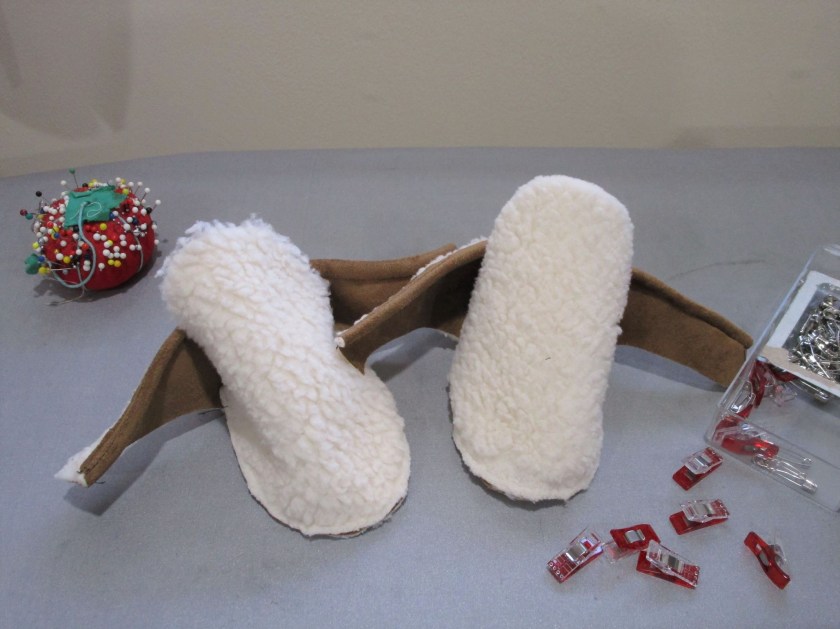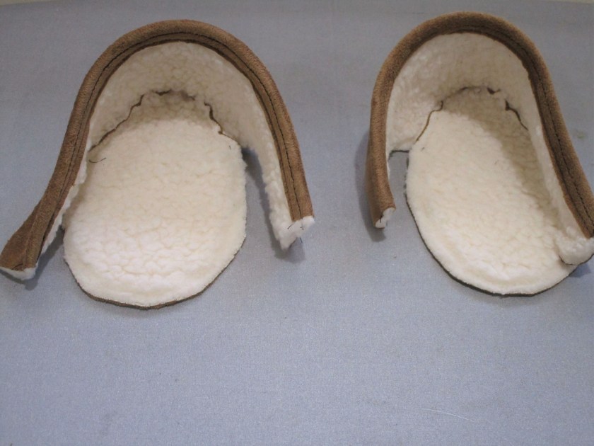 Next comes the toe piece. I again sheared back the fleece from the seam allowances on both pieces before stitching.