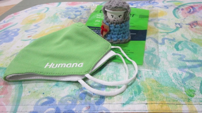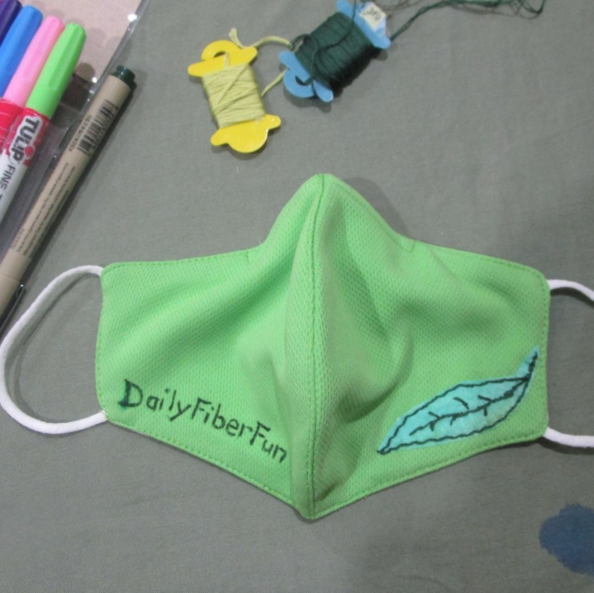 I’ve been struggling along with a pathetic homemade mask that I whipped up quickly. This is a very nice one, but I draw the line at being a walking billboard for some company. I decided to make a few modifications.