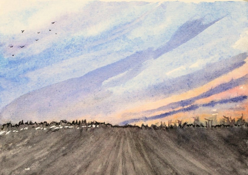 I used Arches cold-press paper. Pigments include raw sienna,