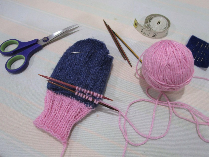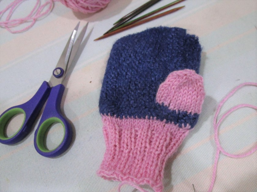 It took a few days because it was possible to work only while the baby was sleeping. She sewed together the two ends of each strip and trimmed up the yarn.