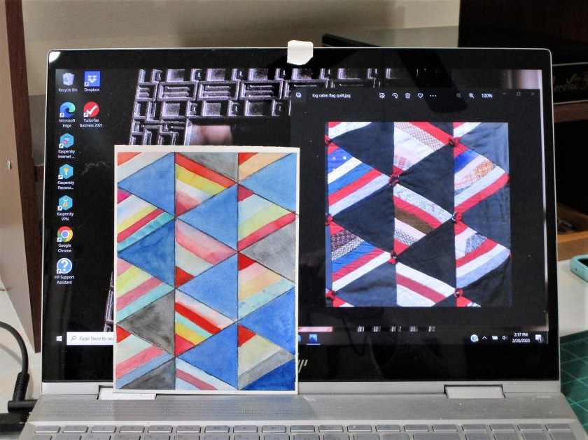 In perusing my library of reference photos, I came across an image of a quilt that really appealed to me. I described it as a log cabin flag quilt. I saved it with the idea of making a similar quilt.
