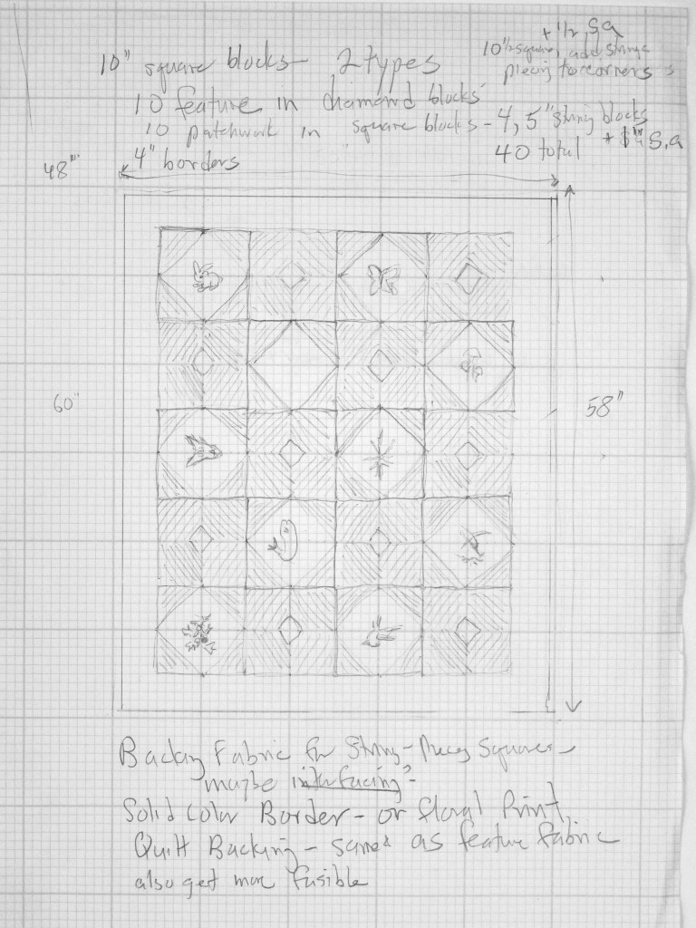 I have no title for this project, so for now I will call it the Oregon Baby quilt. In my first project post, I shared sketches under consideration as subject matter. They focus on animals and plants native to Oregon. This week I added two more: