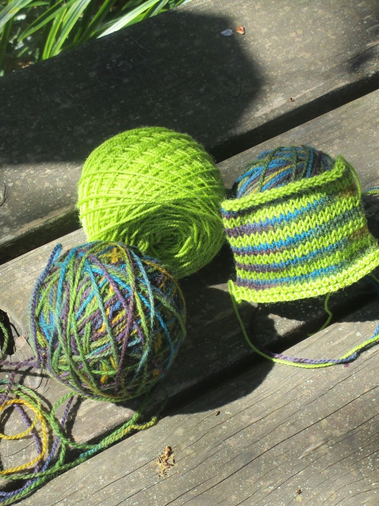 Here are the two yarns knitted in stripes.