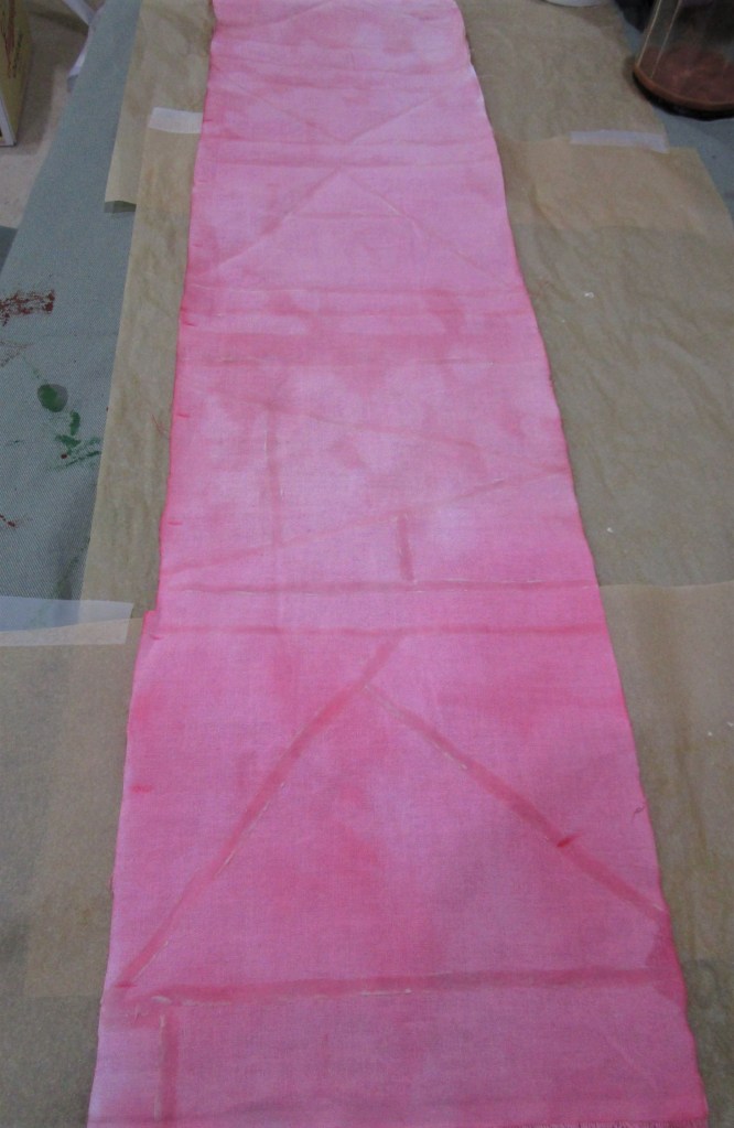 I’m pleased with these swatches, but especially so the water resist piece. Even though the lines did not resist all the way through the fabric, the front of the piece shows the pink lines clearly. The only negative is that the resist hasn’t completely washed out of the fabric. I will probably need to give the fabric an additional soak.