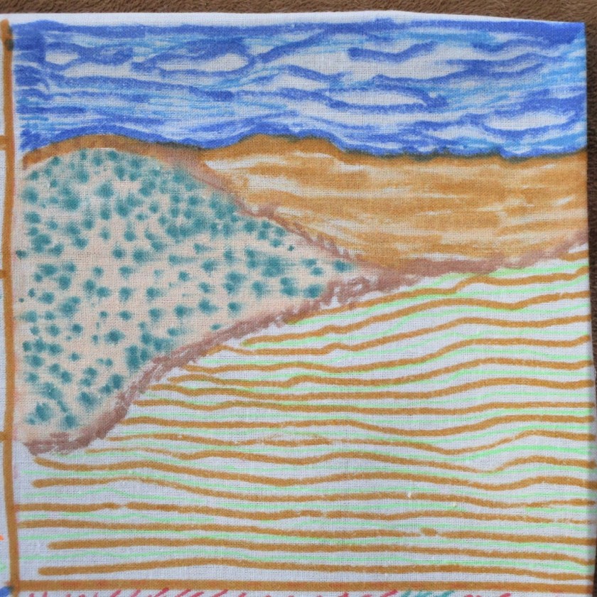 I was discovering what fabric markers can do. This painting is done on lightweight muslin and would need to be mounted on sturdier fabric.