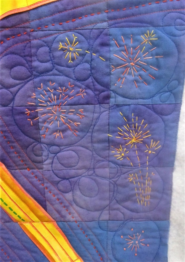 Now my lovely turtle has a few companions. I’m happy with today’s additions and feel more confident about starting the next step – background quilting.