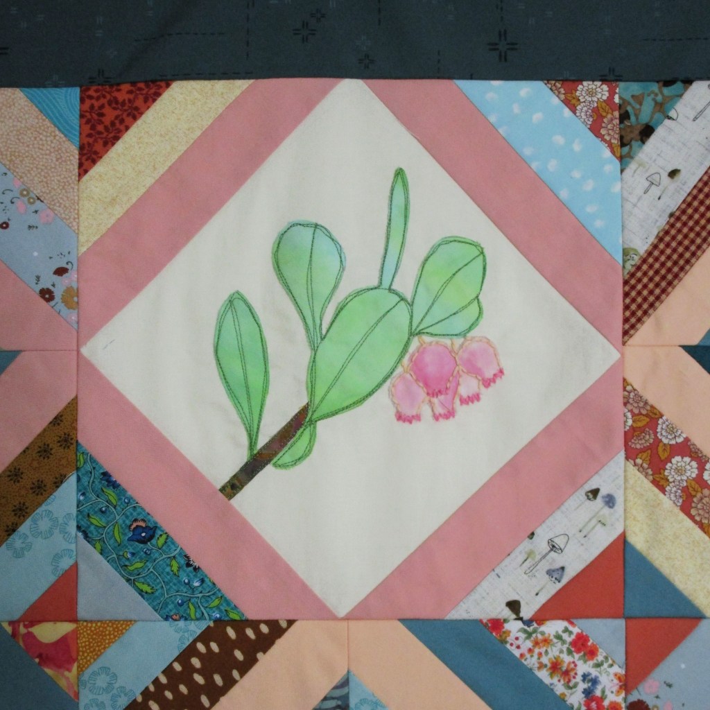 Ten days ago, my sister texted me with wonderful news: My niece’s baby arrived, on her due date. The newest family member is a little girl, named Roseanna Joy. Within days I had assembled the Oregon Natives quilt blocks and added the border.
