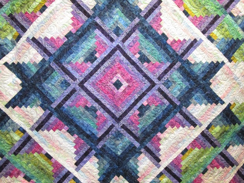 Having recently finished a wall quilt, I found myself with various pieces of fabrics left over. Instead of stuffing them into a box and shoving the box under a bed, I decided to cut the fabric into strips for the purpose of sewing them into a project bag.