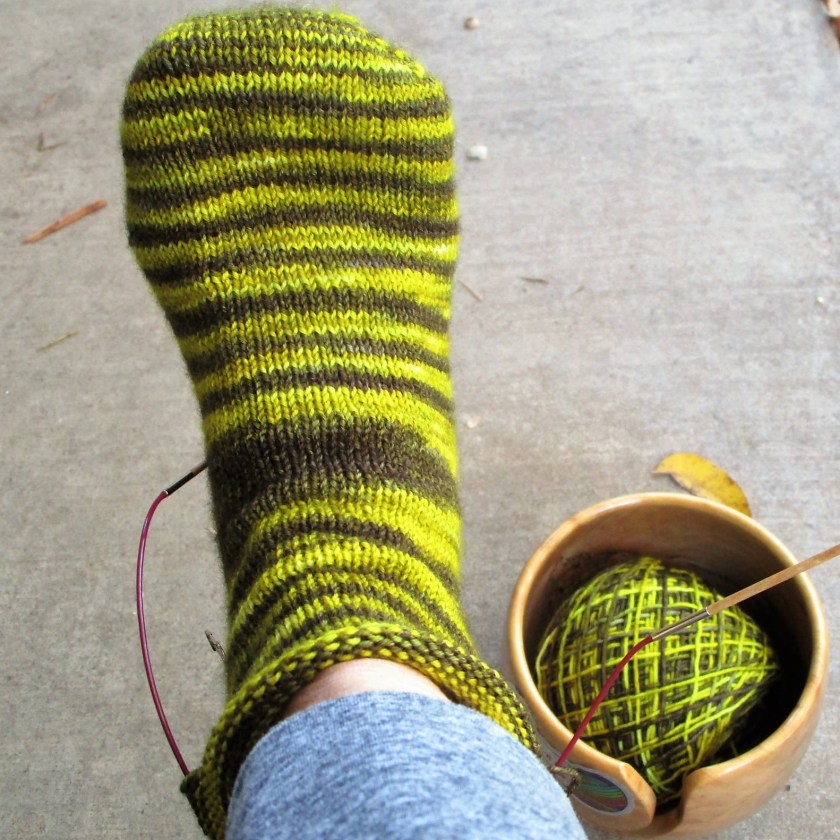 I’m knitting it up from scraps of yarn using a pattern offered by Wool & Pine. The technique is called 1 x 1 colorwork. It is just what it sounds like: Using 2 different strands of yarn per row, knit 1 stitch in color 1, then 1 stitch in color 2. Continue alternating colors to the end of the round. Then it’s up to the knitter on how often to change out colors throughout the project.