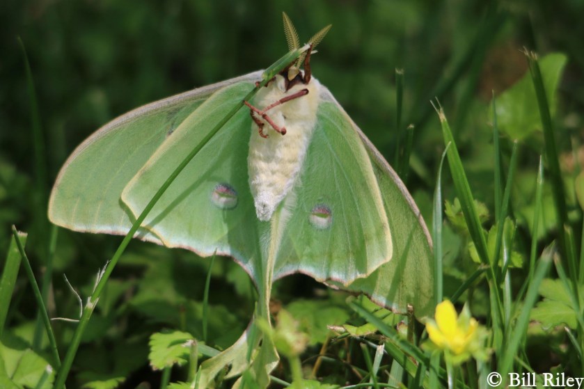I’m finally getting back to the little knitted baby dress. After I became inspired by the Luna moth in my backyard, I decided to embroider a Luna on the green dress. I had finished knitting it a few weeks ago. Today I completed the embroidery. Here is the Luna moth image which served as my model.