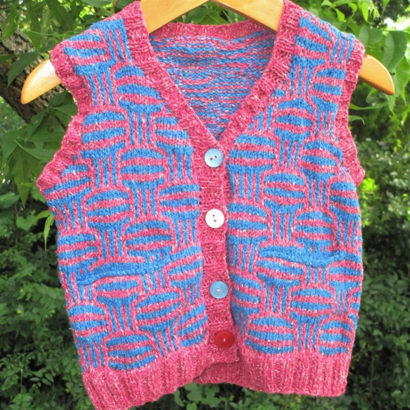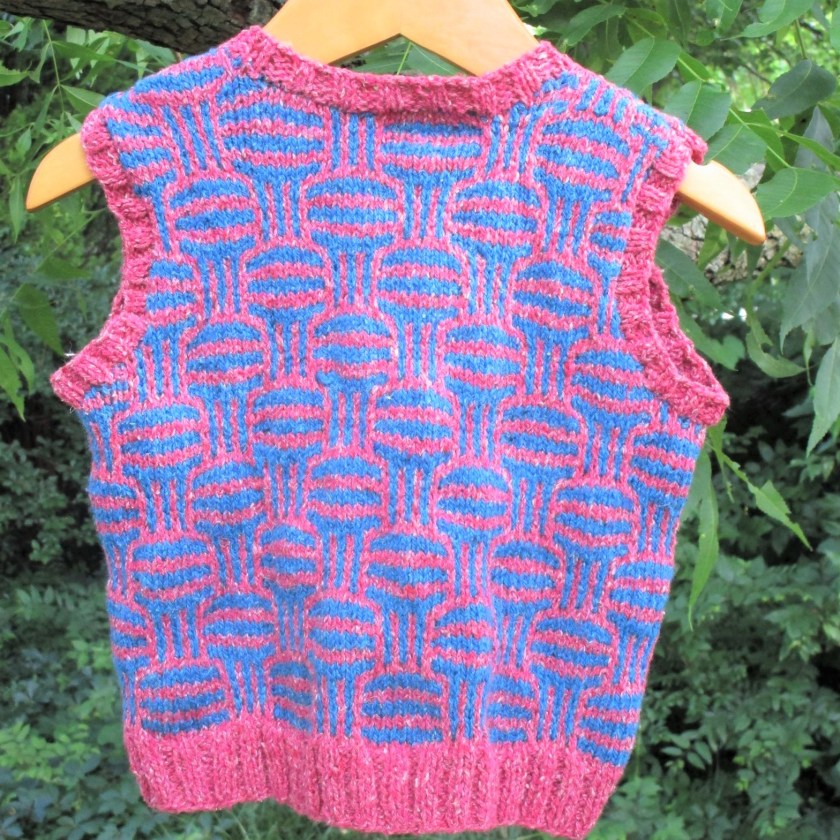 I love the look of this pattern. After knitting it I began to see how an exciting piece of knitting could be made by working a sequence of different mosaic stitches with different background yarns and one foreground yarn.