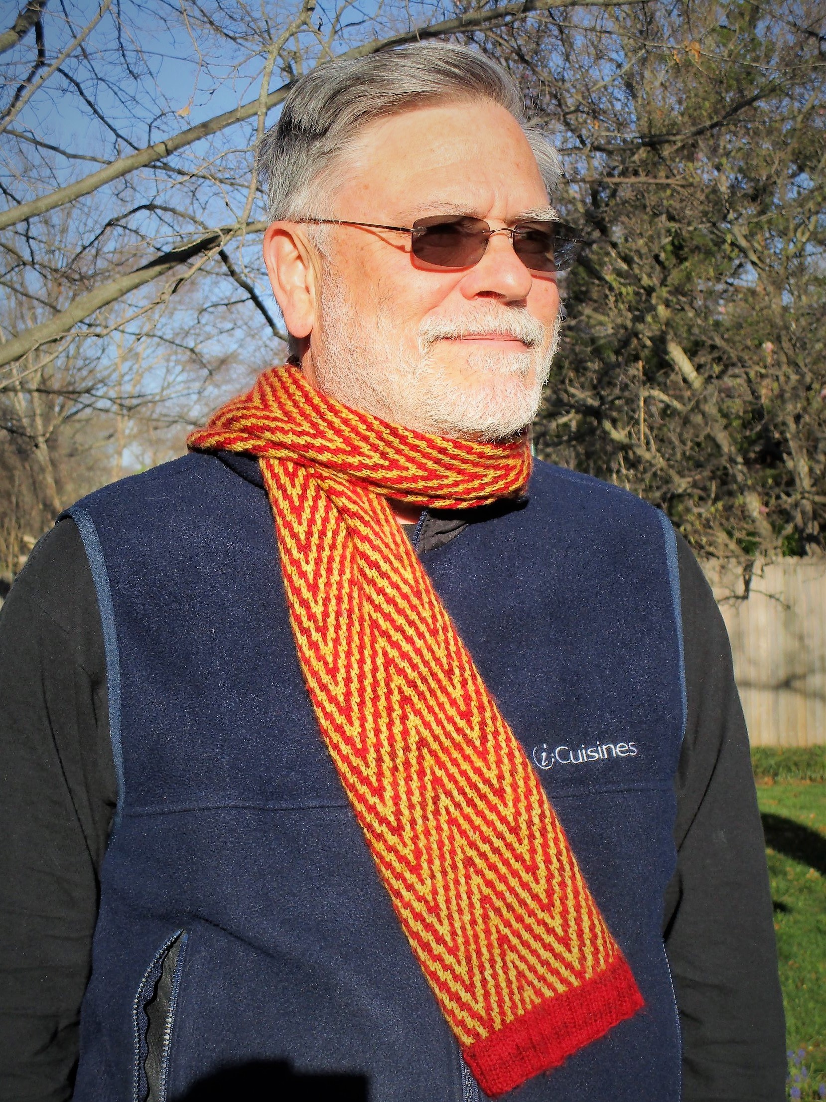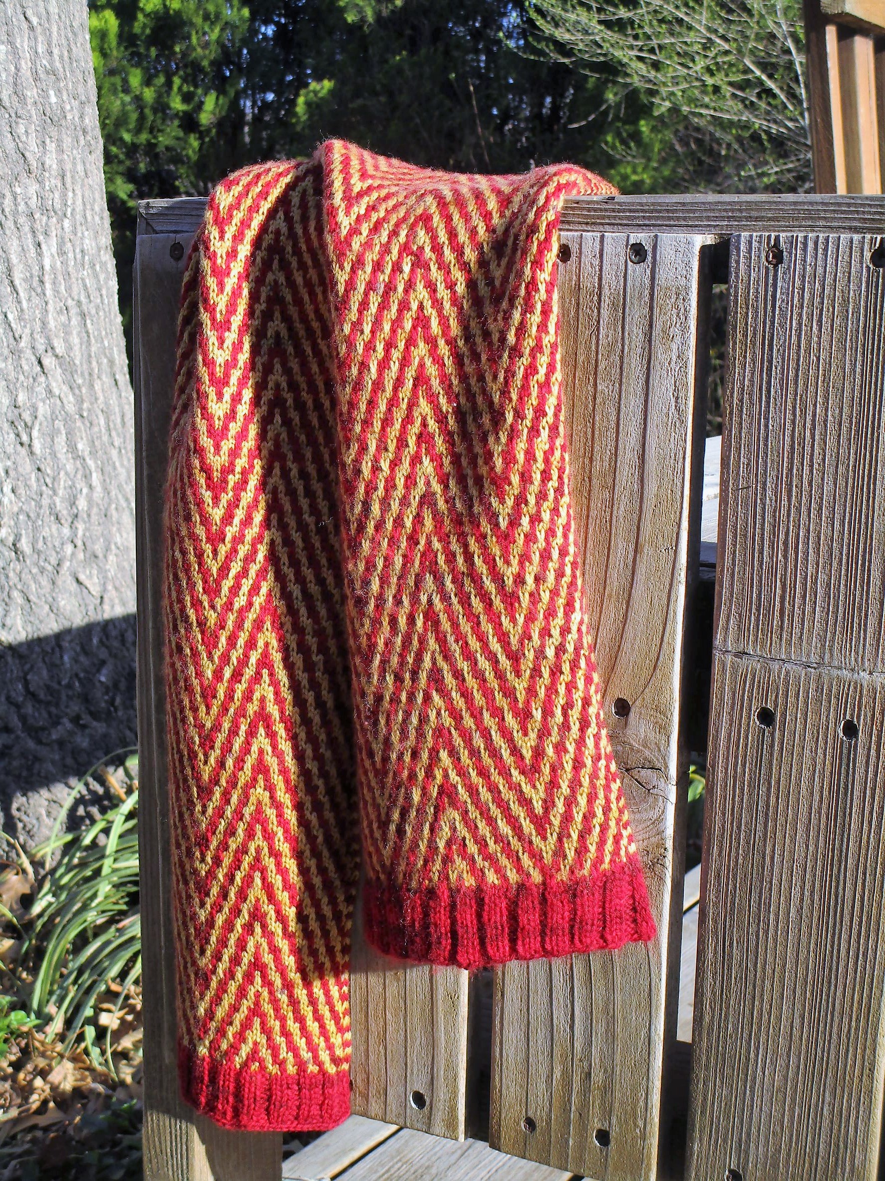 To get started, I picked up Barbara Walker’s excellent Treasury of Knitting Patterns, published in 1968. Chapter Four (Color Changing Patterns) contains advice and 76 different examples of mosaic stitch. The first one I tried is called Rippled Chevron.