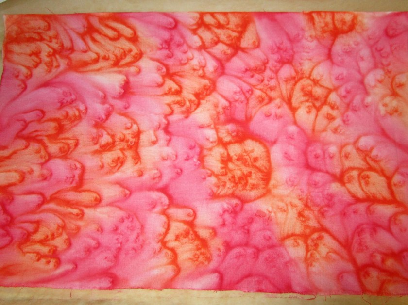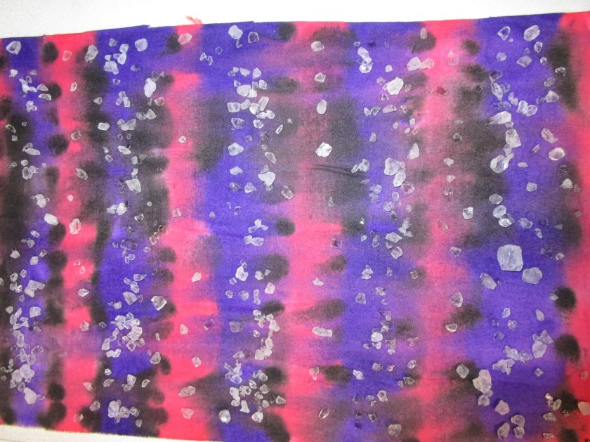 I topped the ice and water piecing with a sky cut from hand-painted fabric.