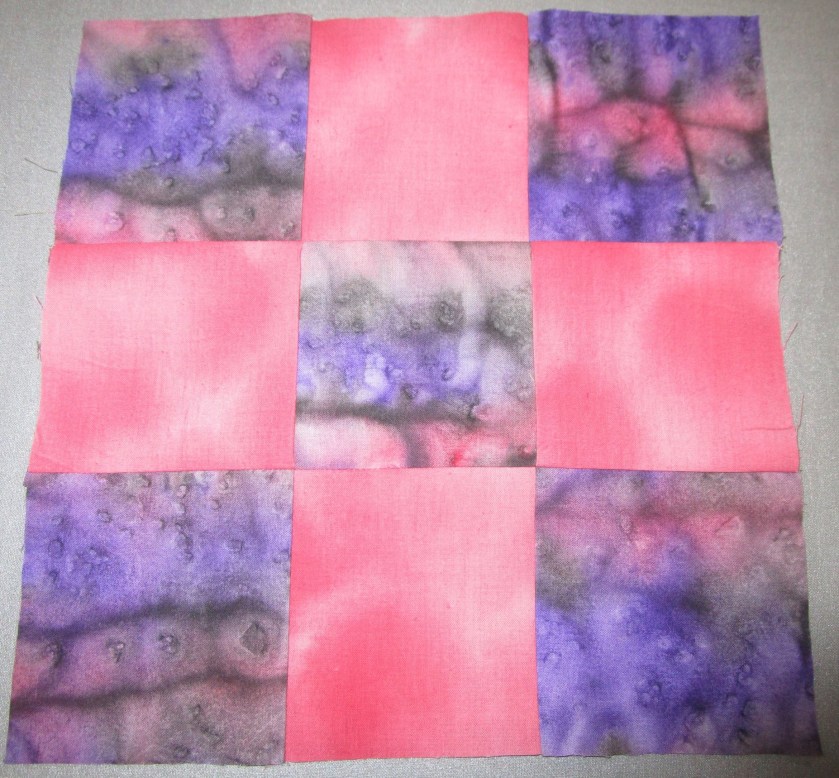 It wasn’t so fast for me to put the squares together. I have very little experience in making most basic quilt blocks. But eventually I had them sewn up into rows.