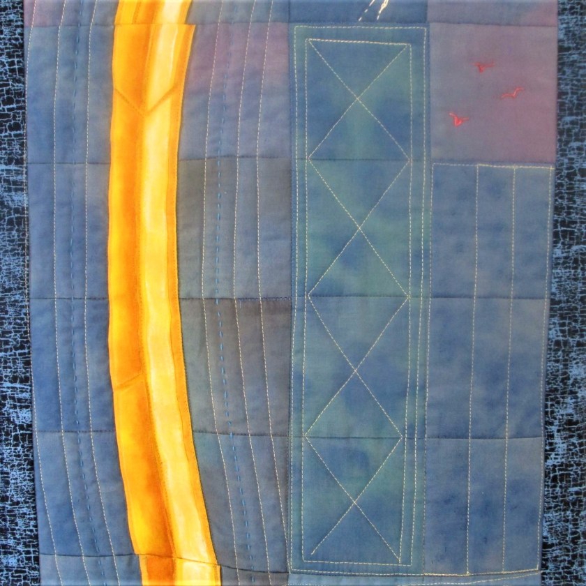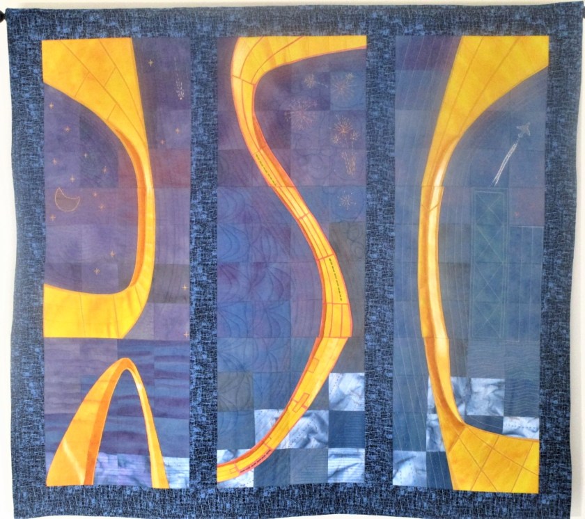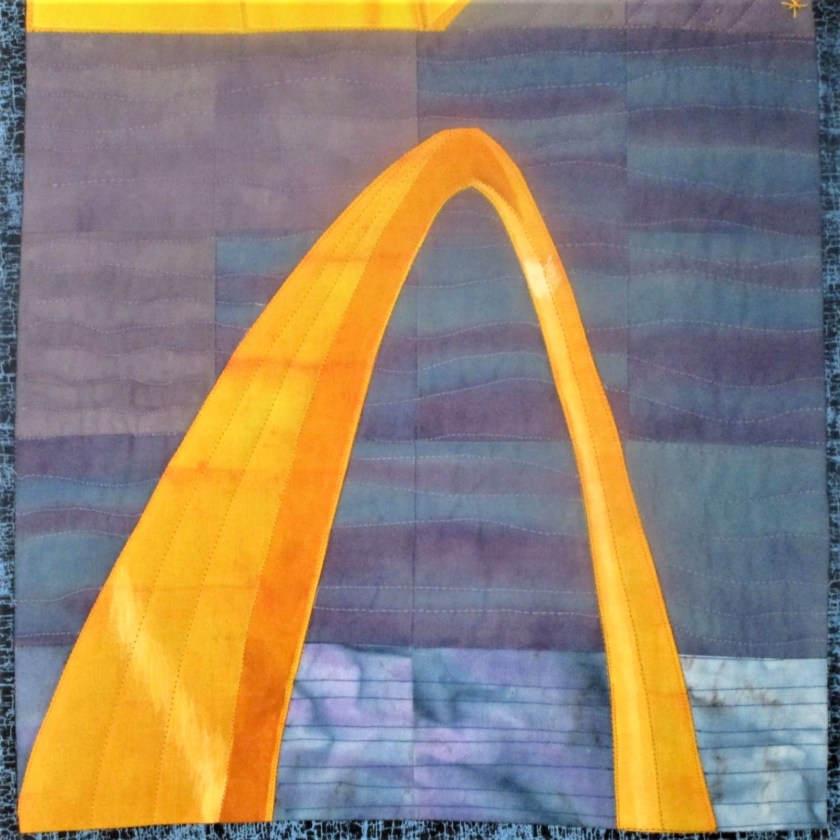 After a nice long break and trip to visit family, I’m ready to get sewing again. It’s time for another mini quilt. This small gems can be framed and hung as art, or turned into pillows, journal covers or other accessories. I plan to use many of the hand-painted fabrics leftover from making the Gateway Arch quilt. I have so many scraps!