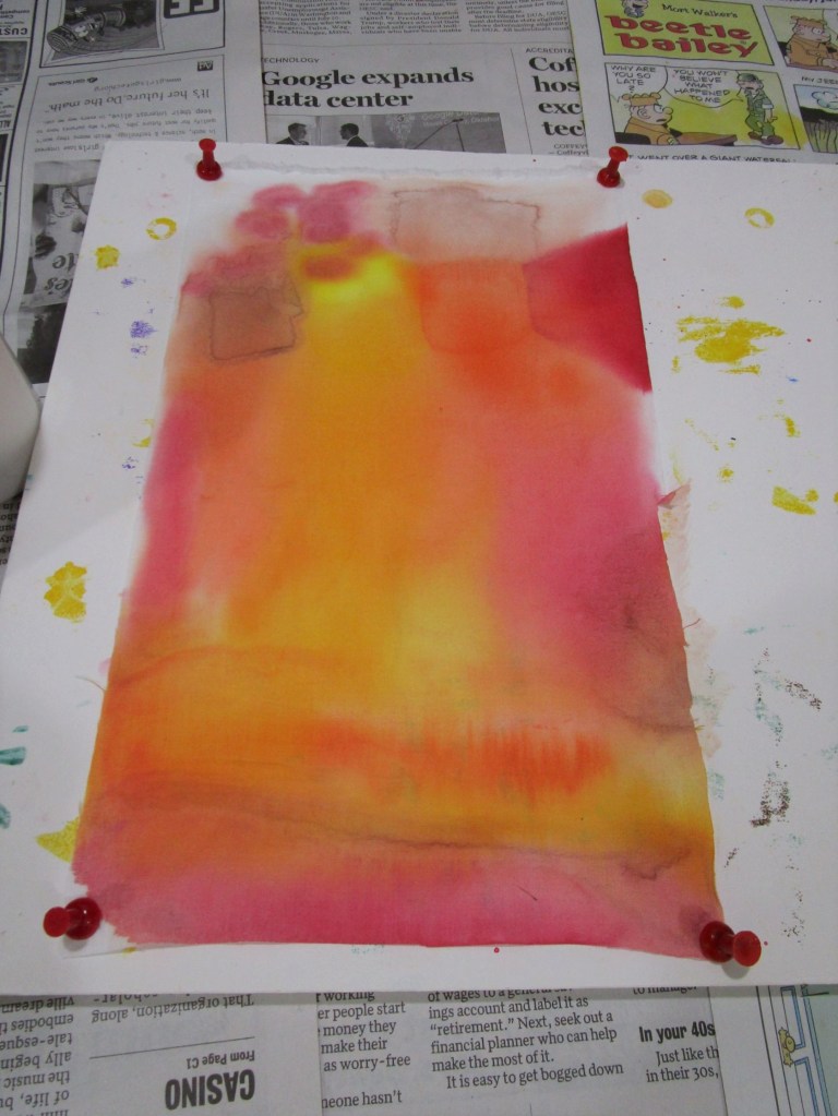 It was a relaxing and productive afternoon. I look forward to working on the gray fabric. It will be interesting to see how it reacts to the sheer fabric paint.