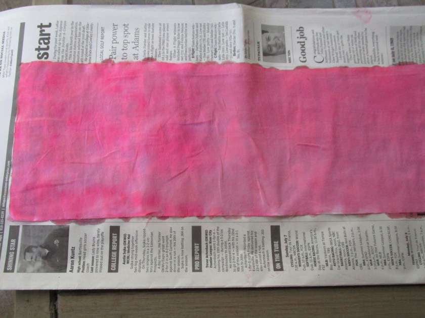 This was the tail end piece. It may be enough for one strip. It looks a bit blue in this photo, but I assure you that it dried pale pink.