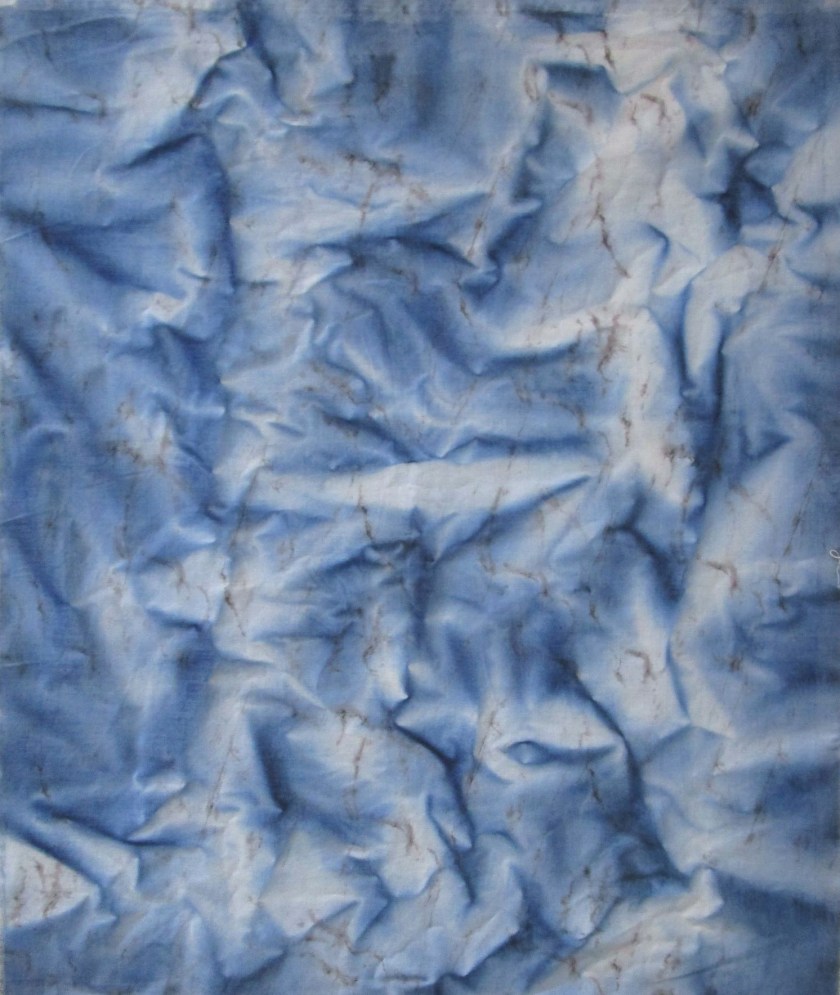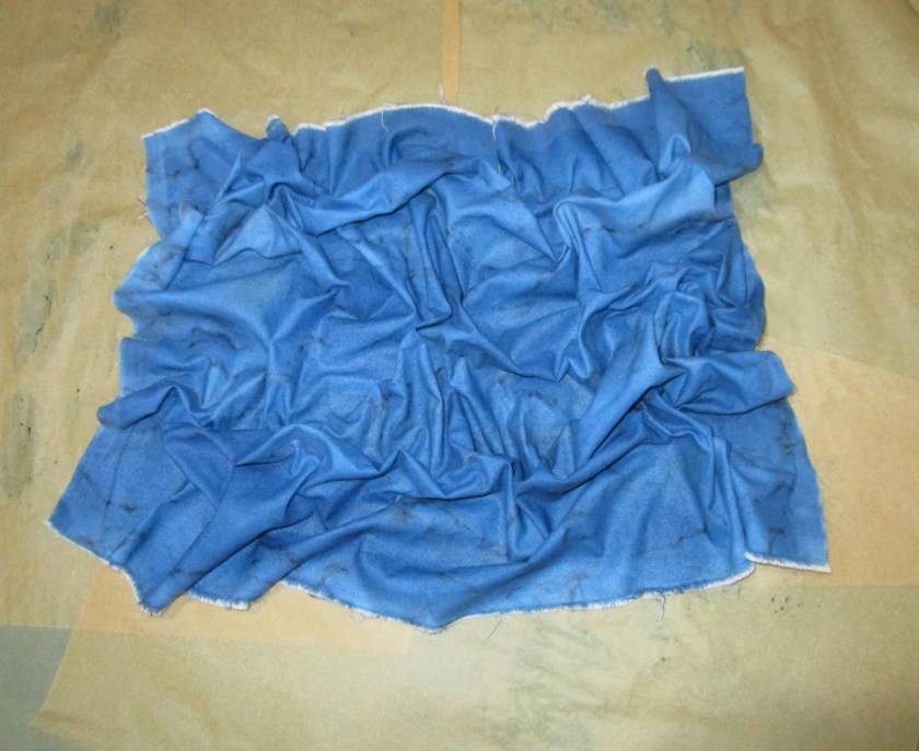 I stuck with the blue paint, but darkened it by mixing in black for a monochromatic color scheme. At the last minute, I decided to scrunch the wet fabric.