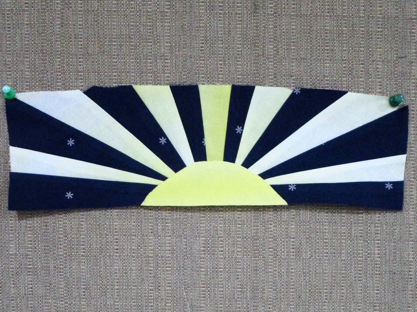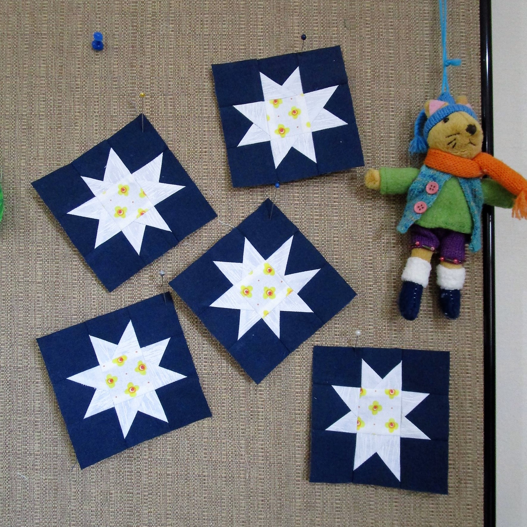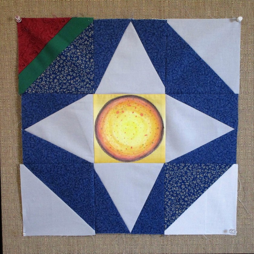 A google search helped me get out of this assignment. I discovered many Japanese quilts that incorporated hoshi blocks in different techniques and styles. So I decided to use this criss-cross star block as described by Anorina on sameliasmum.com