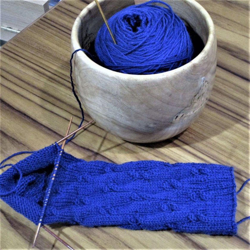 During my stash dive I discovered several sock yarn skeins, some of which have enough yardage for a pair of socks. This deep blue yarn was left over from a sweater I made for myself a few years ago.