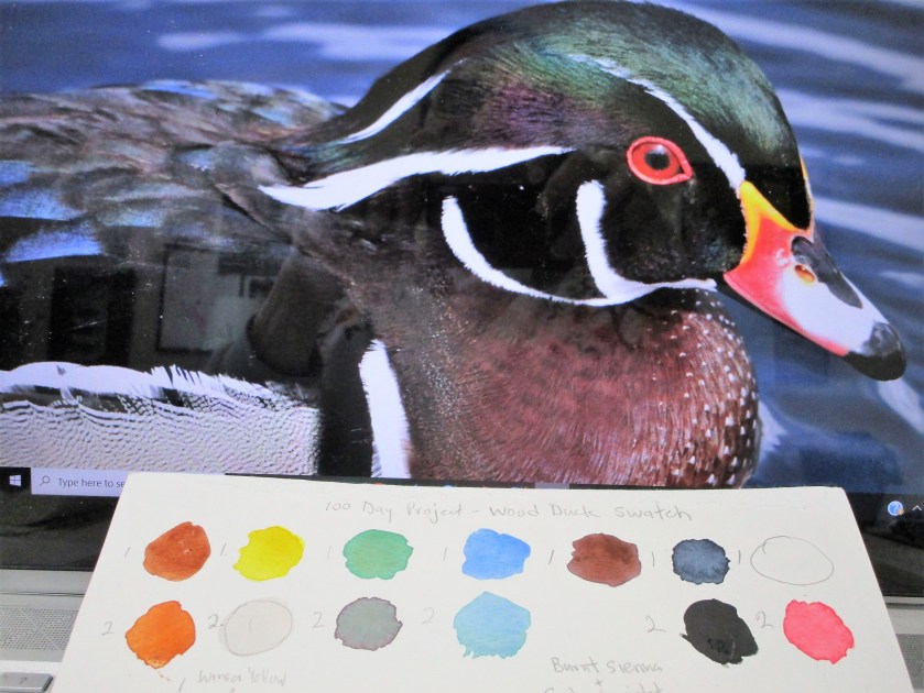 Bill’s close up of a wood duck was begging for another paint swatch study. So that what I did on Day 10.