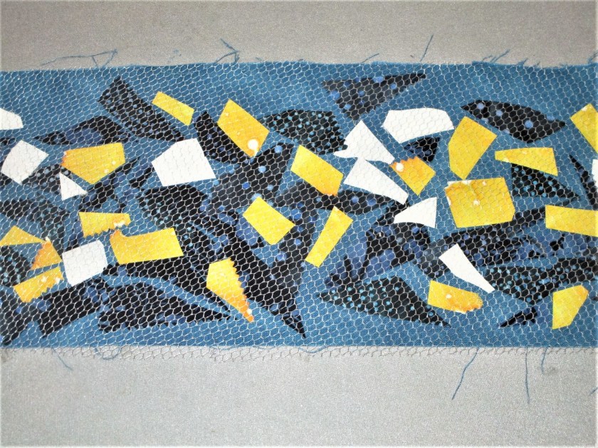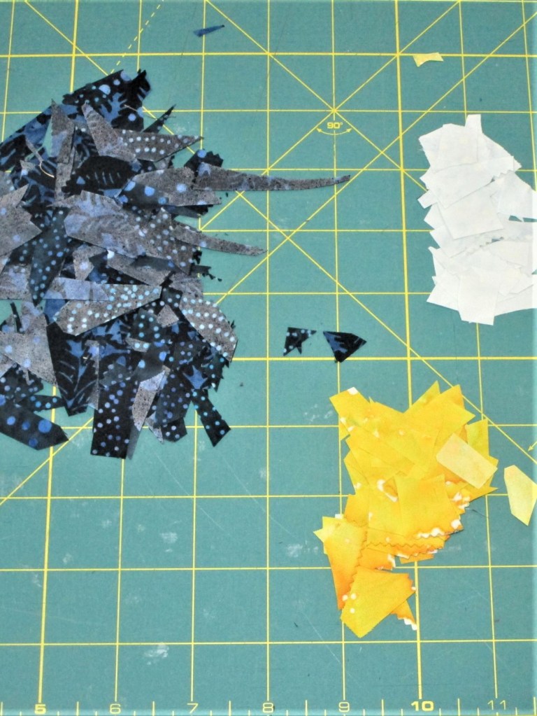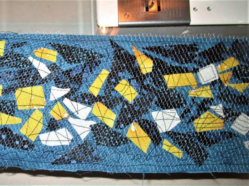 I feel really happy. While this project took me many hours to complete, I find it very expressive. The quilting and the background paint lines represent the motion of the sunflowers as they sway in the wind. I like to think the echo lines represent the energy that exists in all living things.