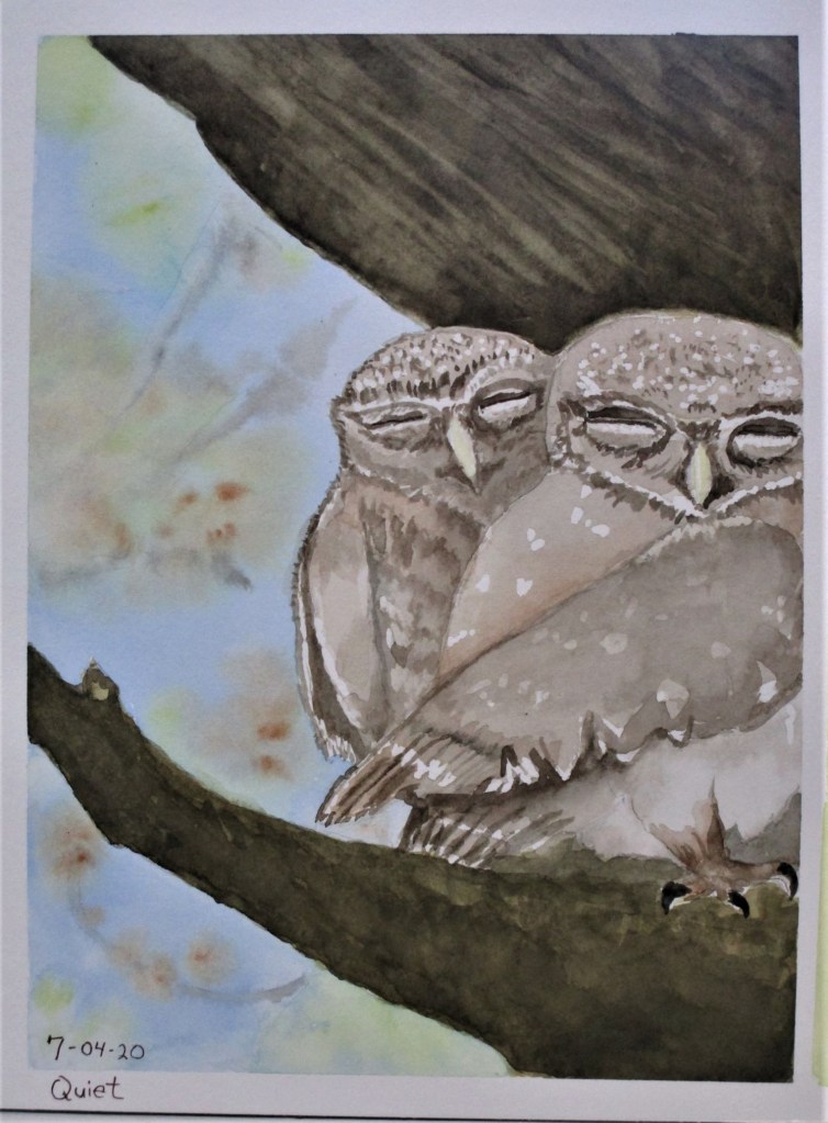 After it was mostly dry, I added a bit of darker green to outline the vines.